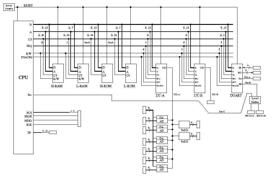 selects (/CS), an SPI bus and a RS232 serial bus.